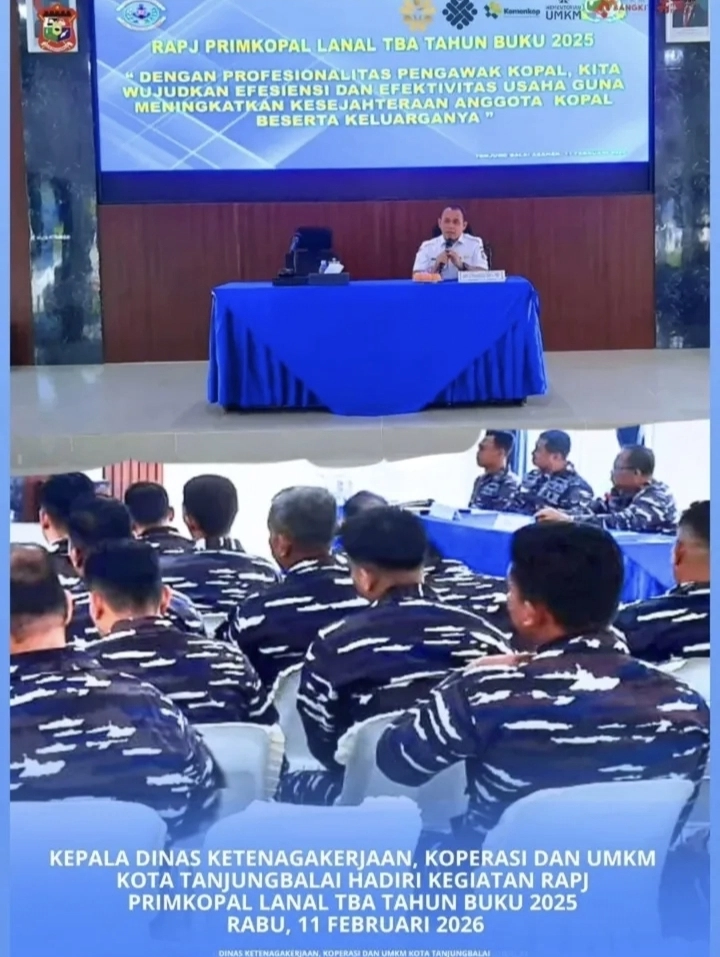 Rabu, 11 Februari 2026 RAPJ PRIMKOPAL LANAL TBA Tahun Buku 2025 yang dihadiri oleh Kepala Dinas Ketenagakerjaan, Koperasi, Usaha Mikro Kecil dan Menengah Kota Tanjungbalai